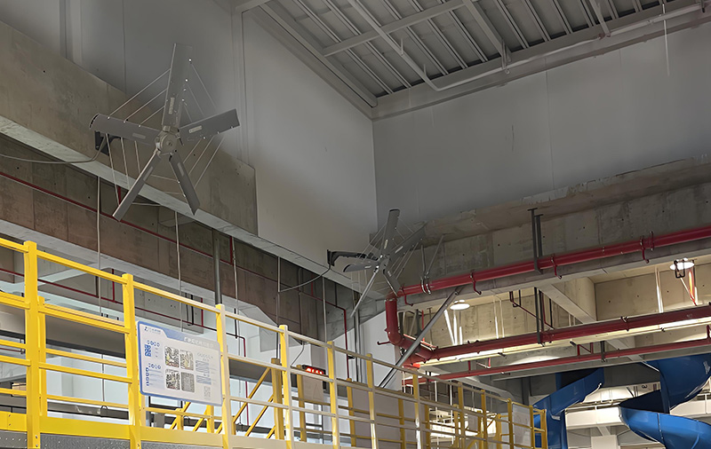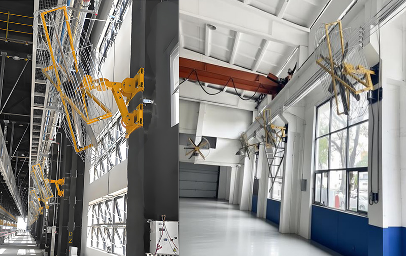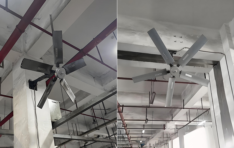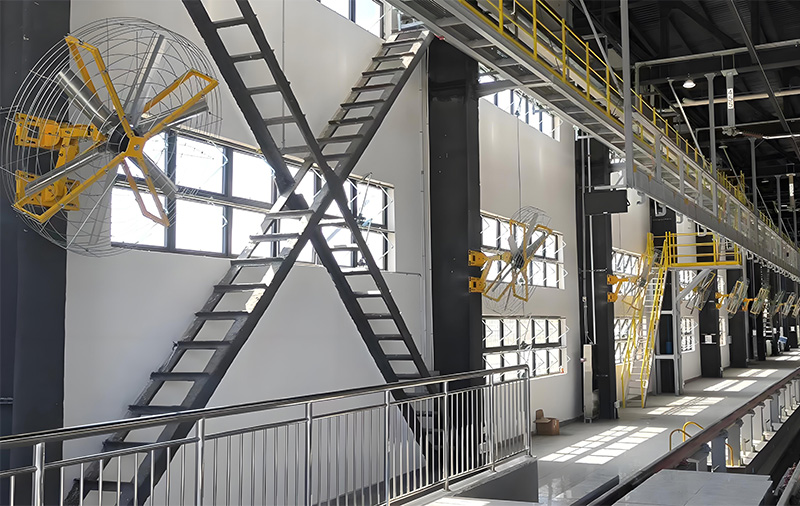 产品技术特点 | A)提供两种叶片,适应不同的应用场景,行业首创; B)根据超大吊扇的叶片距离地面最小3.1米的行业要求,在壁扇叶片最低处高于地面3.1米的条件下,推出无网罩超大壁扇。 功能和效果与有防护网的壁扇相同,但是重量更轻,价格非常具有竞争力。 C)提供立柱和屋面两种安装方式。 |