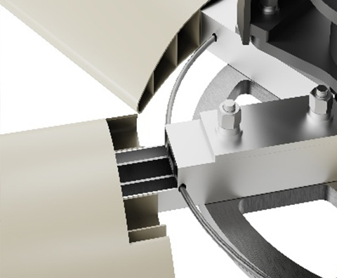 必瑞客创新性的采用金属骨架与塑料外壳内外嵌套的工艺,将塑料叶片的风扇直径增加到4.9米以上。