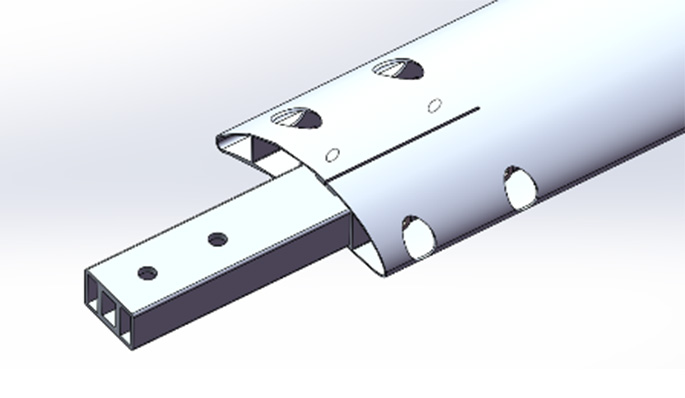 必瑞客对此的做法是系统性的强化连接部位。叶片内腔设置两个4mm厚的贯通立筋,它有两个作用,一是强化叶片的整体刚性,二是将叶柄与叶片的紧固螺栓连接改为叶柄与叶片立筋的连接,为水平、横向连接,同时在叶片外壳的上表面加工容置槽,叶柄与立筋紧固时,通过容置槽补偿虚位,避免立筋及叶片变形,出现压痕。